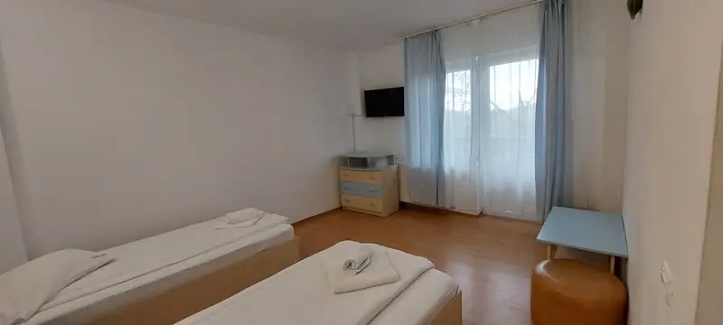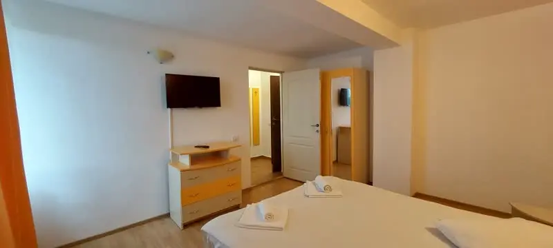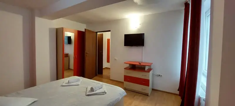 oferã cazare în trei camere duble, un apartament cu doua camere si un apartament cu 3 camere, cu baie proprie, TV(led), încãlzire centralã și, firește, acces gratuit la bucãtãrie proprie.