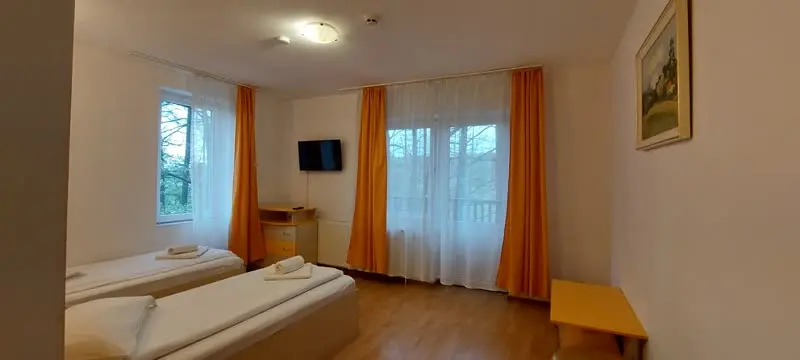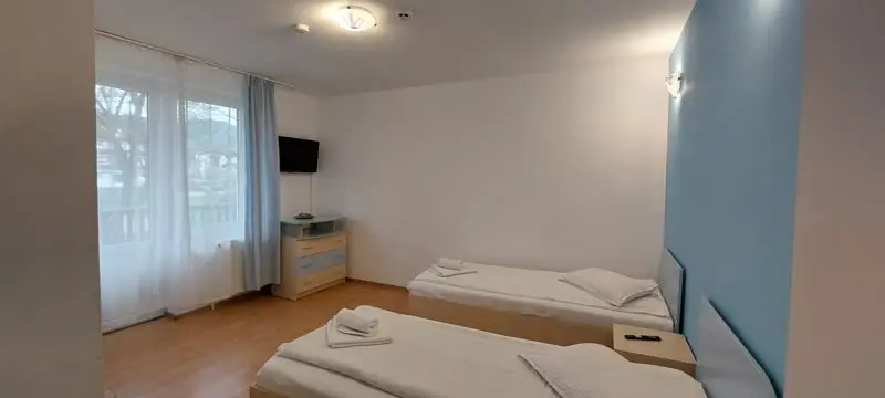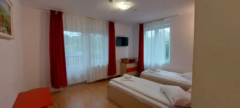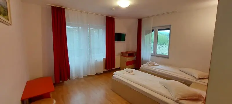 Dispunem de o capacitate totalã de 40 de locuri de cazare in 11 camere duble, 3 apartamente cu douã camere și un apartament cu 3 camere.