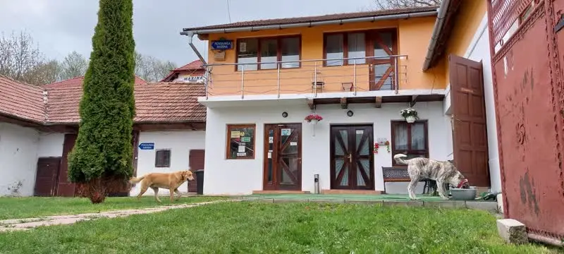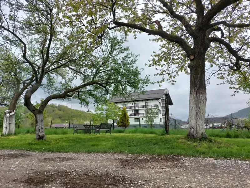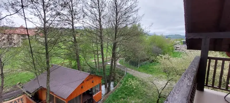 înconjurați de munți și brazi, iar un superb pârâiaș de munte traversează curtea pensiunii.