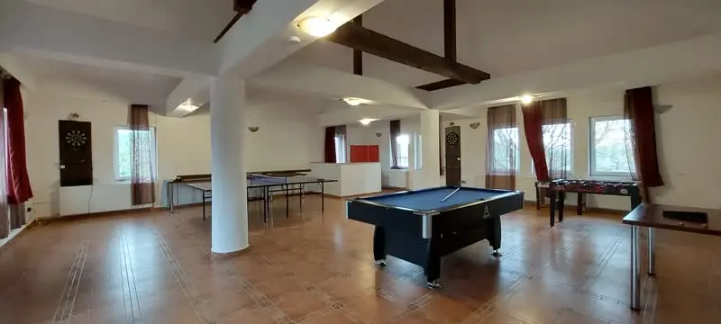 Pensiunea Marina dispune de o sală pentru activități recreative: biliard, tenis de masă, fotbal de masă, darts, iar, locul de joacă pentru copii este super dotat pentru toate vârstele.